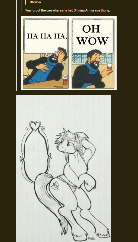 Yes, yes it was all lulz worthy indeed, but perhaps the best part came at the end, when a forgotten image shows Pinkie's love for that emasculated horse dick.